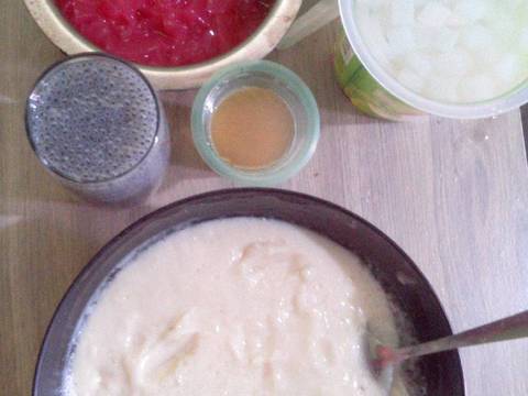 - Masak bahan jelly sampai mendidih dan kental . Tuang dalam cetakan . Biarkan dingin . Lalu potong tipis atau dadu pun oke .